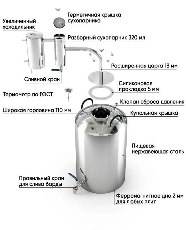 Вы заказываете самогонный аппарат напрямую с завода, Без посредников! Для вас это означает: